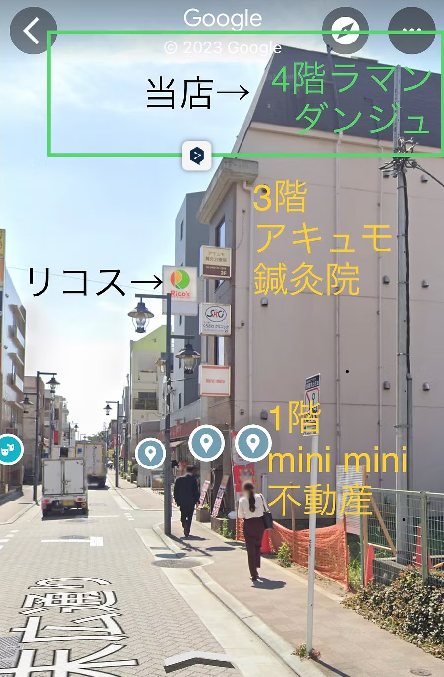 *ミニスーパーの「Rico’s リコス」より手前にビルがありますので